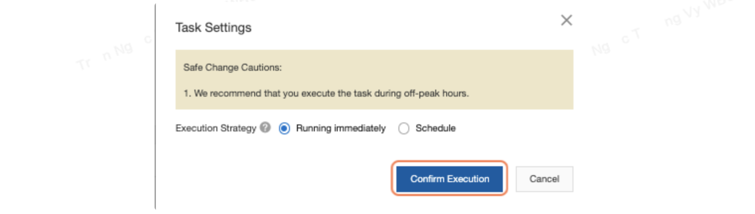 Lúc này bạn sẽ tạo ra một ticket trên DMS để đổ dữ liệu vào, sau khi ticket được check thành công, bạn có thể chọn Execute Change để đến bước tiếp theo.