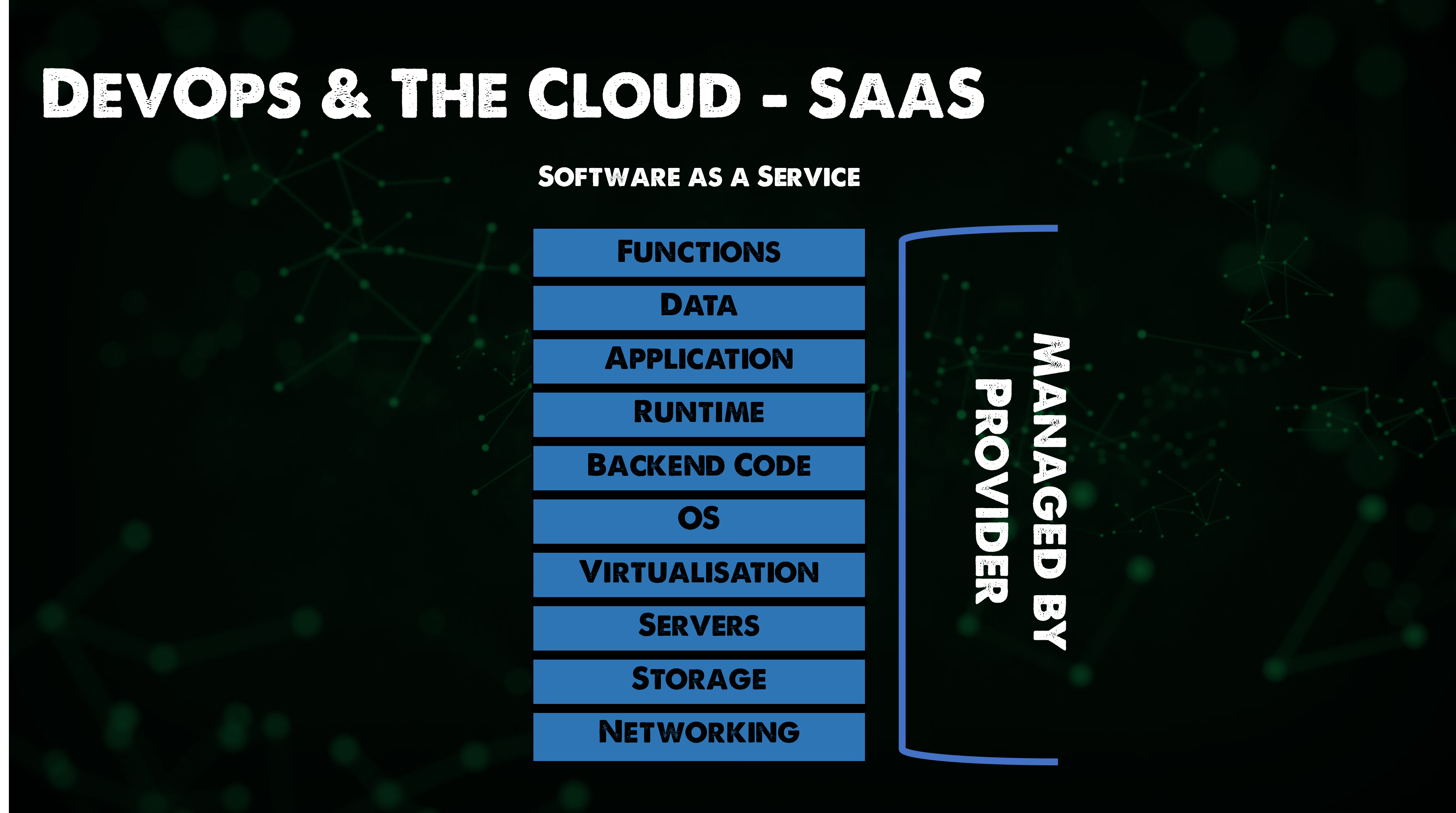 Lĩnh vực cần nhắc tới đầu tiên là Phần mềm dưới dạng dịch vụ (Software as a Service), dịch vụ này sẽ loại bỏ gần như toàn bộ chi phí quản lý của một dịch vụ mà bạn có thể đã từng chạy on-premises. Hãy nghĩ nó giống như Microsoft Exchange cho email của chúng ta, đây từng là một máy chủ vật lý nằm trong trung tâm dữ liệu của bạn. Bạn sẽ cần phải cung cấp các tài nguyên cần thiết cho máy chủ đó. Điều đó có nghĩ là bạn sẽ cần cập nhật nó, chịu trách nhiệm quản lý và nâng cấp phần cứng máy chủ, rất có thể là cài đặt hệ điều hành, cài đặt các ứng dụng cần thiết và nếu có sự cố xảy ra, bạn sẽ phải khắc phục sự cố, cài đặt bản sao lưu và chạy lại dịch vụ.