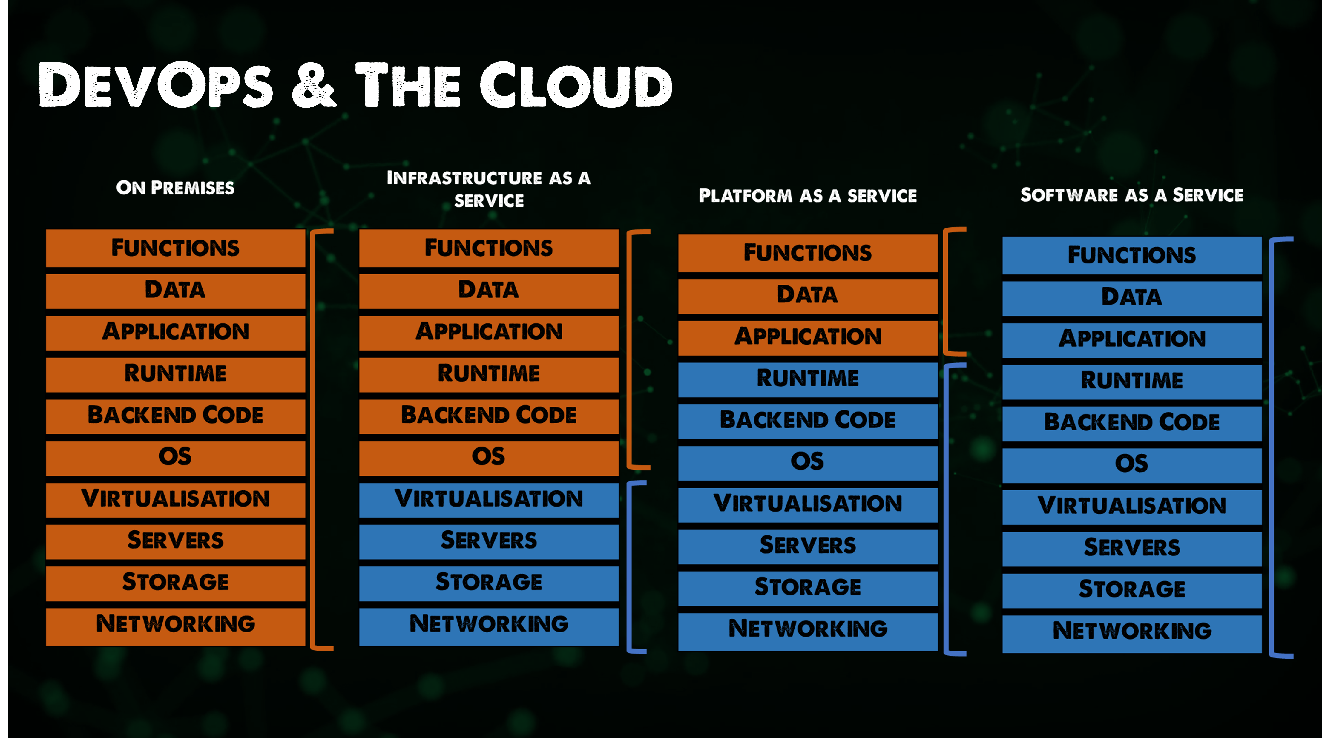Chúng ta đã đề cập trong phần SaaS rằng điện toán đám mây đã loại bỏ trách nhiệm hoặc gánh nặng phải quản lý các thành phần của hệ thống. Nếu SaaS, chúng ta thấy rất nhiều lớp trừu tượng bị loại bỏ, tức là hệ thống vật lý, mạng, bộ lưu trữ, hệ điều hành và thậm chí là bản thân ứng dụng ở một mức độ nào đó. Khi nói tới điệu toán đám mây, có nhiều mức độ trừu tượng khác nhau mà chúng ta có thể xoá hoặc giữ tuỳ thuộc vào yêu cầu của bạn.