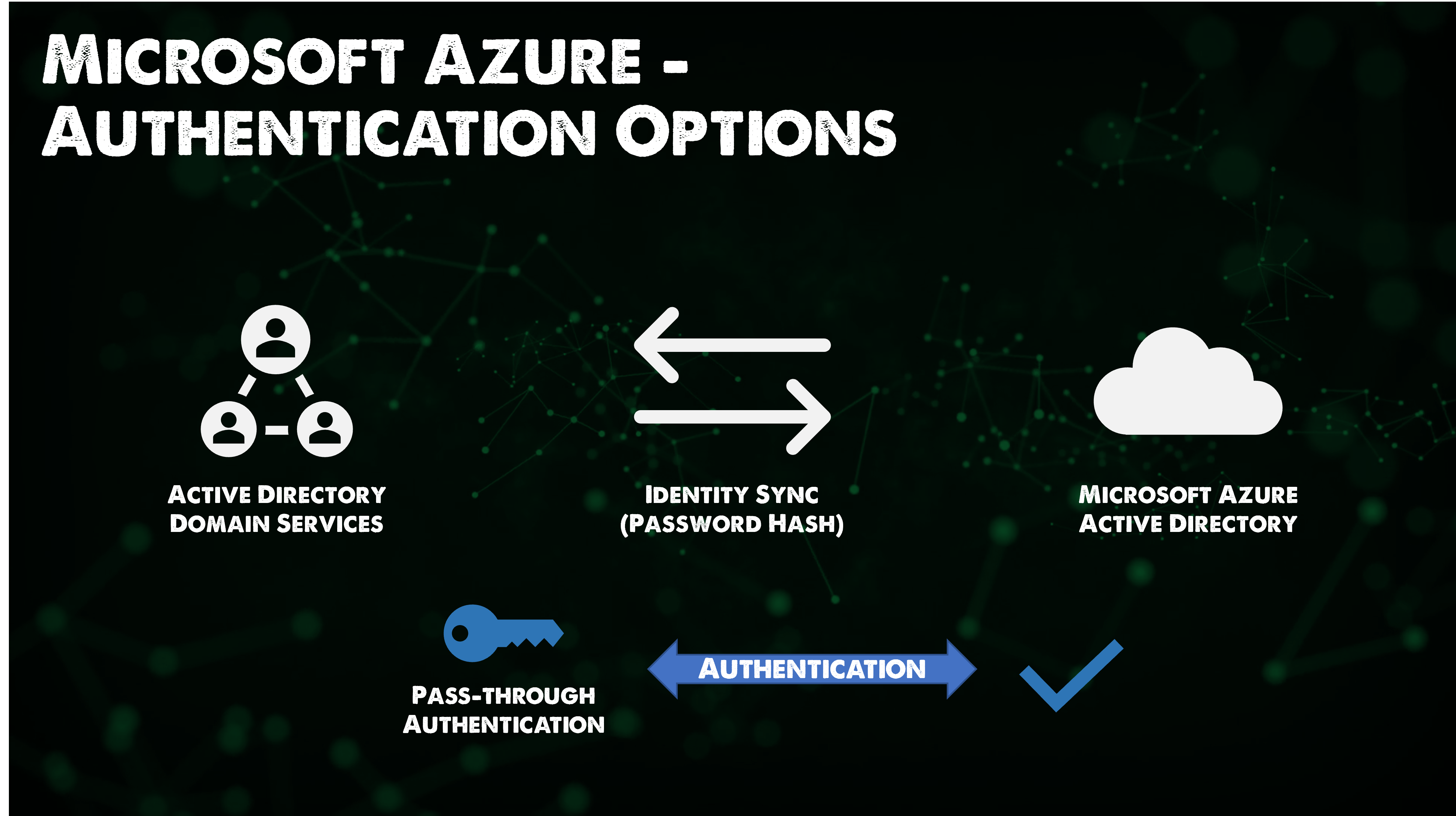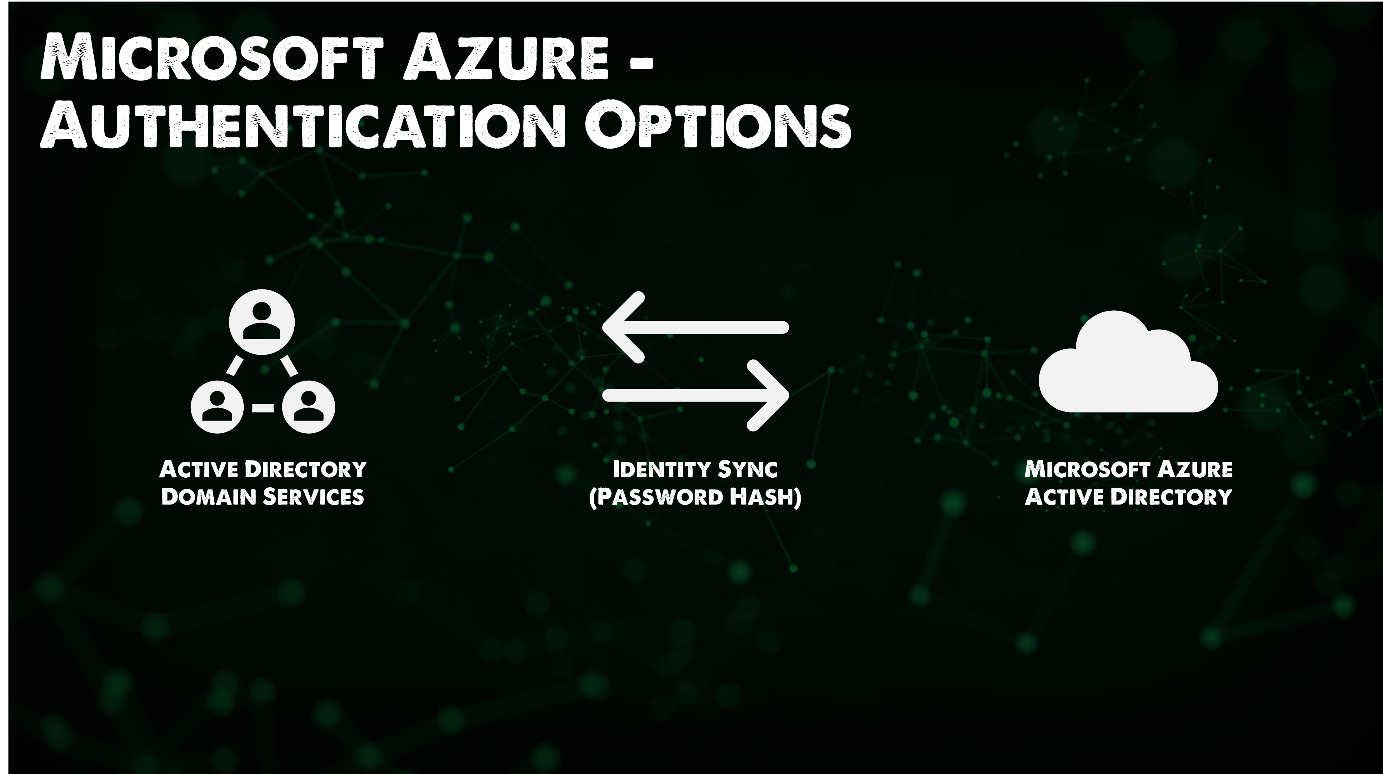 CÓ thể có các tuỳ chọn xác thực giữa dịch vụ Azure Directory Domain và Microsoft Azure Active Directory với đồng bộ hoá danh tính sử dụng hàm băm mật khẩu.
