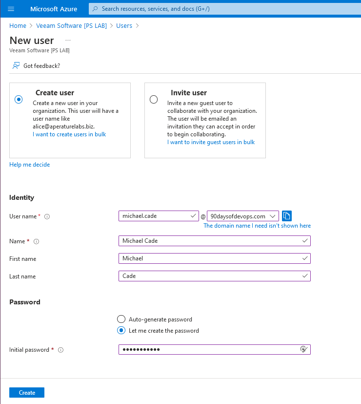 Sau khi thực hiện điều này, chúng ta có thể tạo một người dùng mới trên Azure Directory domain của mình.