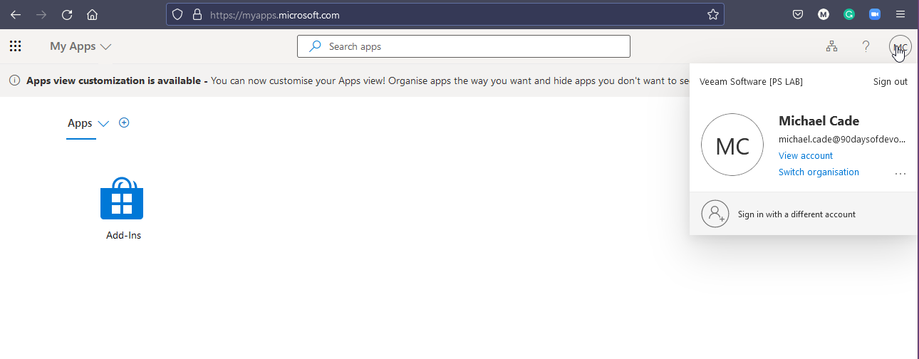 Nếu người dùng có quyền truy cập vào các tài nguyên bên trong Azure portal, cách trên sẽ rất tiện lợi. Tuy nhiên, không phải người dùng nào cũng cần biết về portal này, để kiểu tra quyền truy cập, bạn có thể sử dụng Apps Portal. Đây là single sign-on portal để chúng ta có thể kiểm tra.