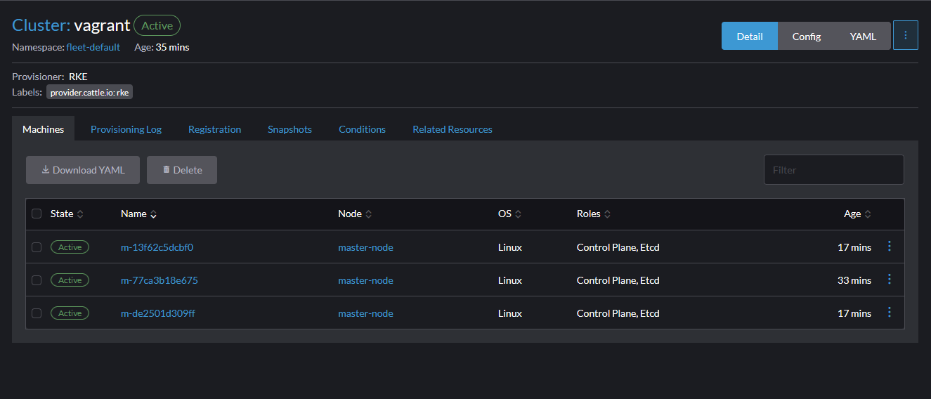 Trong các bài viết trước, chúng ta đã tạo một minikube cluster và đã sử dụng Vagrant với VirtualBox để tạo một Kubernetes cluster gồm 3 nodes. Với Rancher, chúng ta cũng có thể tạo cluster. Trong thư mục Rancher bạn sẽ thấy các tệp vagrant tạo ra 3 nodes giống nhau nhưng không có các bước tạo Kubernetes cluster của chúng ta (chúng ta muốn Rancher làm điều này cho chúng ta)