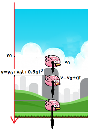Nhưng trước hết, các bạn cần phải biết những điều cơ bản về chuyển động rơi tự do. Thực chất, rơi tự do là chuyển động nhanh dần đều theo gia tốc trọng trường. Các bạn cần phải biết các phương trình của chuyển động rơi tự do y = y0 + v0t + 0.5gt2 và v = v0 + gt. Nếu chưa rõ thì các bạn có thể tự tìm hiểu nhe, mình không nói kỹ ở đây.
