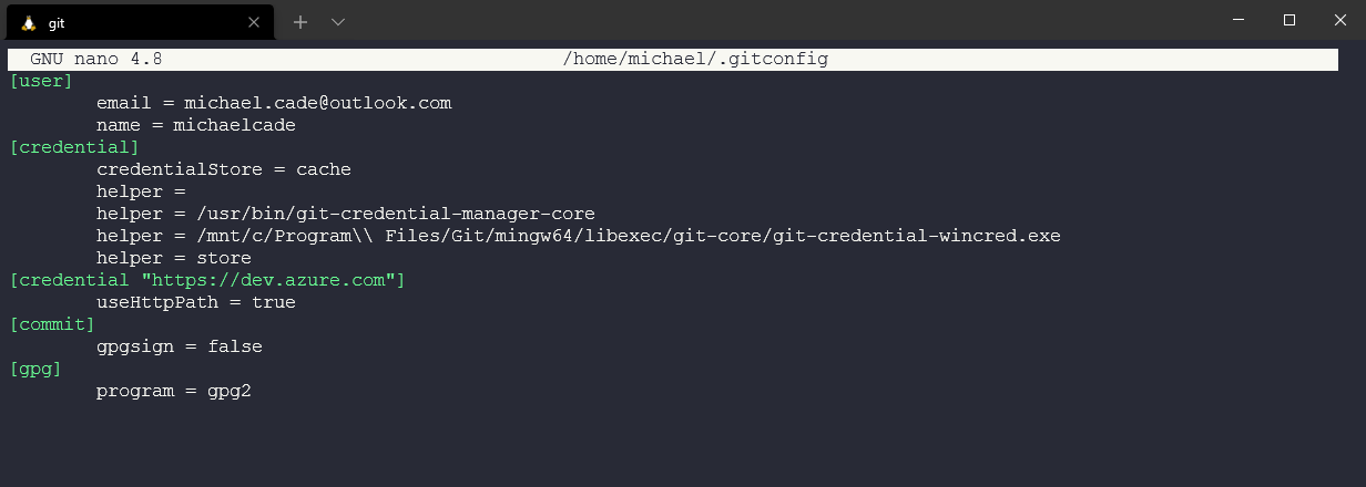 Tuỳ thuộc vào hệ điều hành của bạn, text editor mặc định sẽ được tự xác định. Với Ubuntu của tôi, câu lệnh tiếp theo sẽ sử dụng nano. Lệnh dưới đây sẽ thay đổi editor thành Visual Studio Code.