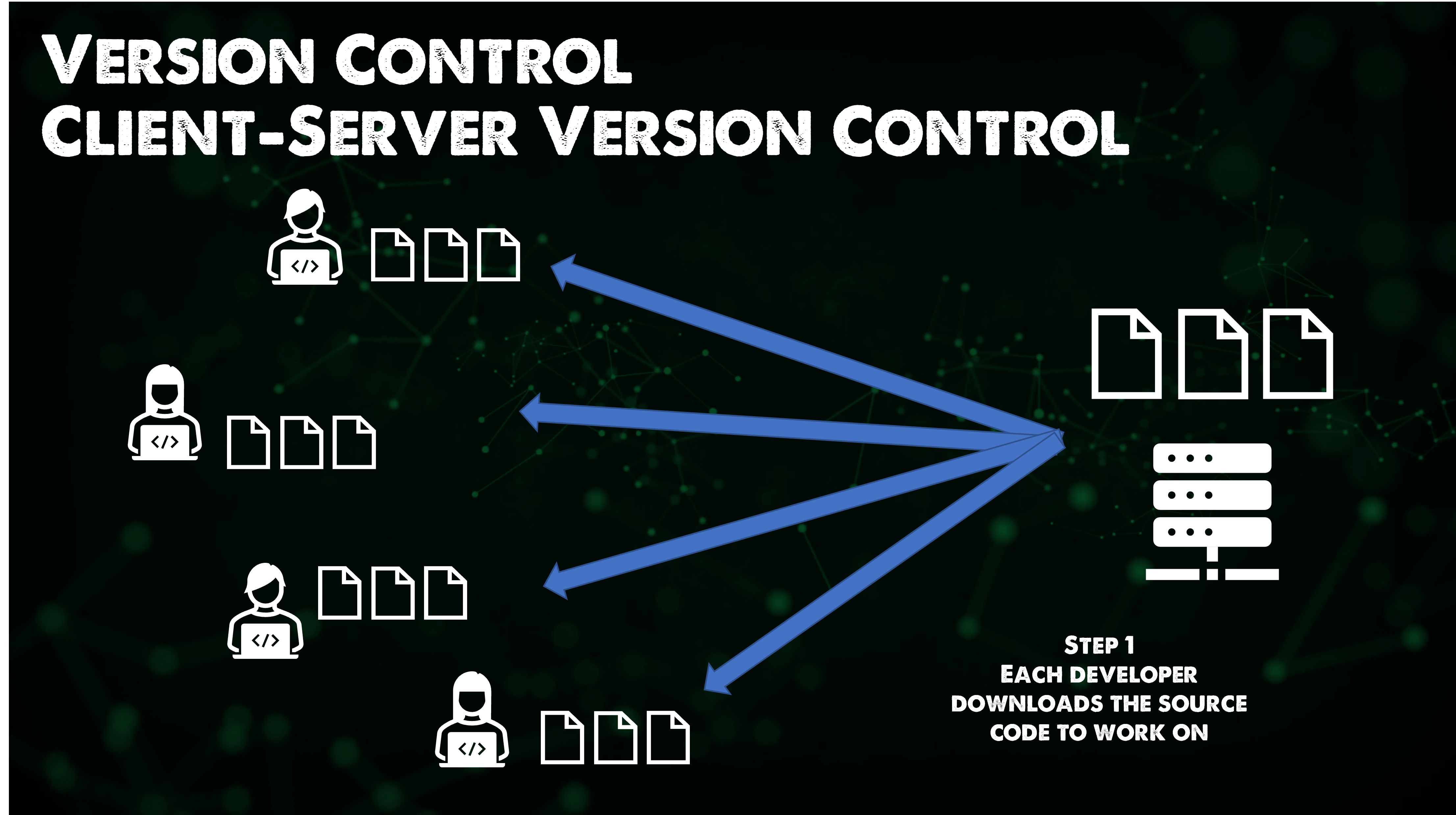 Trong mô hình quản lý phiên bản Client-Server này, bước đầu tiên nhà phát triểu cần làm là tải xuống mã nguồn và các tệp từ máy chủ. Điều này không giải quyết các xung đột nhưng nó loại bỏ sự phức tạp của các xung đột và cách giải quyết chúng.