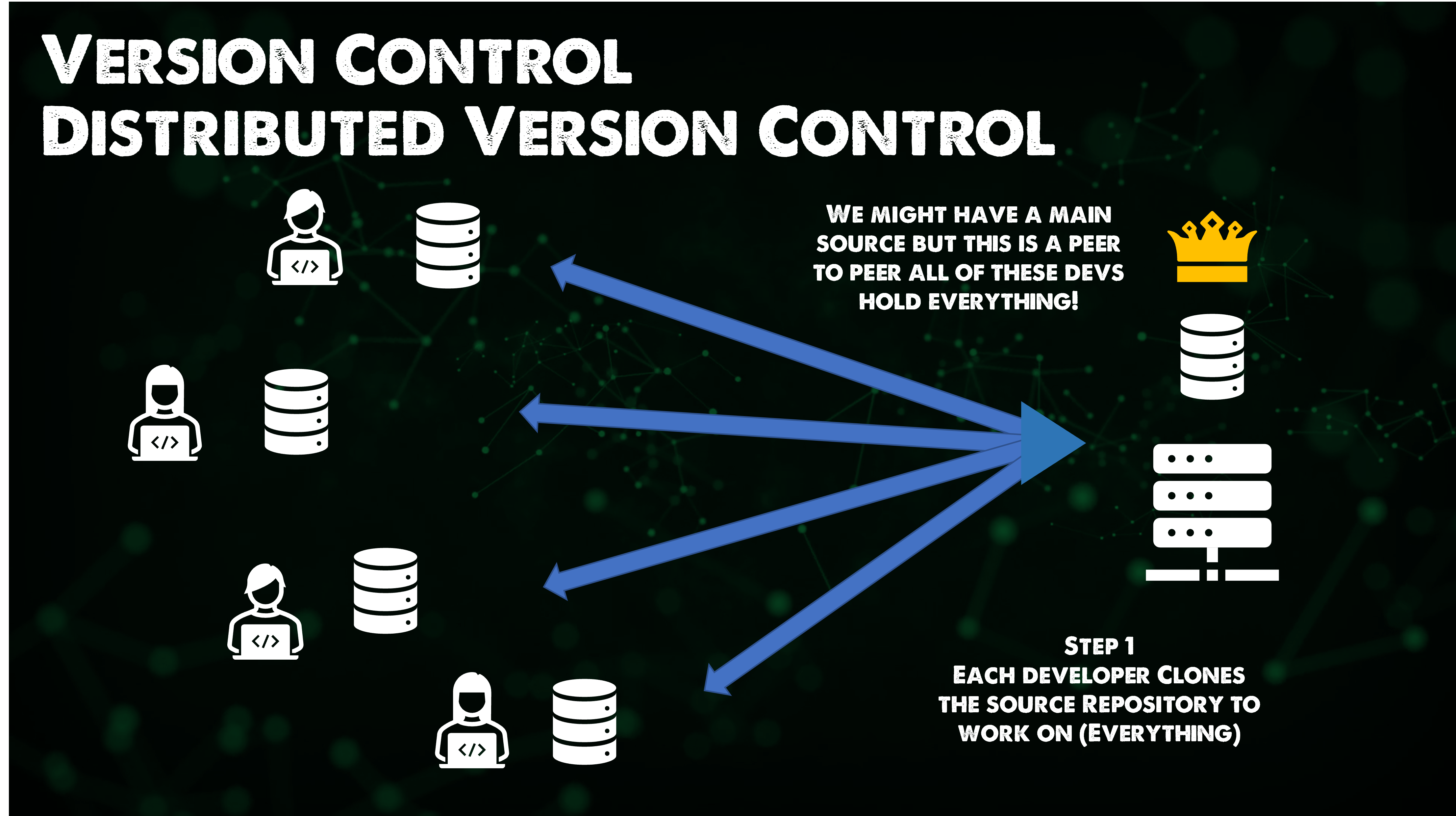 Khác với mô hình kiểm soát phiên bản Client-Server, mỗi nhà phát triển tải xuống một repository thì nó sẽ bao gồm tất cả mọi thứ. Lịch sử các commit, tất cả các nhánh ...